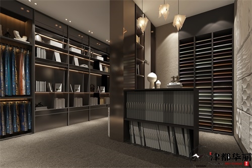 今天分享的是銀川展廳裝修設(shè)計(jì)案例,整體展廳設(shè)計(jì)清雅有格調(diào),在內(nèi)部空間,刪繁就簡(jiǎn),空間互相聯(lián)結(jié)、穿插、輝映。以極具序列張力的氣韻,還原美學(xué)的本真。展示架的韻律美感傳遞給二級(jí)臺(tái)階,透過(guò)精致的表現(xiàn)手法,反映出簡(jiǎn)約且飽滿的光影層次。構(gòu)建島臺(tái),延伸出平穩(wěn)空靈的桌面形態(tài),與金屬造型展開呼應(yīng),將視覺焦點(diǎn)讓渡于桿件陳列墻,凸顯每種色彩、質(zhì)地、肌理搭配的可能性、美學(xué)性與和諧感。省略吊燈,從營(yíng)造氛圍與精準(zhǔn)展示的角度出發(fā)打造穩(wěn)定的光效,在恰當(dāng)?shù)牧舭讌^(qū)域置入藝術(shù)畫作,借草間彌生持續(xù)專注自我的真誠(chéng)態(tài)度,暗喻軟裝展廳的內(nèi)在追求。以廓形豐潤(rùn)的體塊描摹出動(dòng)線節(jié)奏,黑白元素為之加持,同時(shí)輔以鏤空、錯(cuò)落、對(duì)比、相交的手法升華細(xì)節(jié)意蘊(yùn),形成浪漫可尋、功能常在的構(gòu)成美學(xué),為融洽交流賦能。